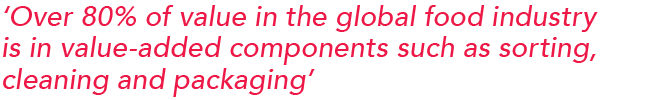 ‘Over 80% of value in the global food industry is in value-added components such as sorting, cleaning and packaging fruits and vegetables. The various forms of value-addition provide opportunities for the private sector to expand their commercial activities and access higher-value markets, either for domestic consumers or exports,’ writes Dewji.