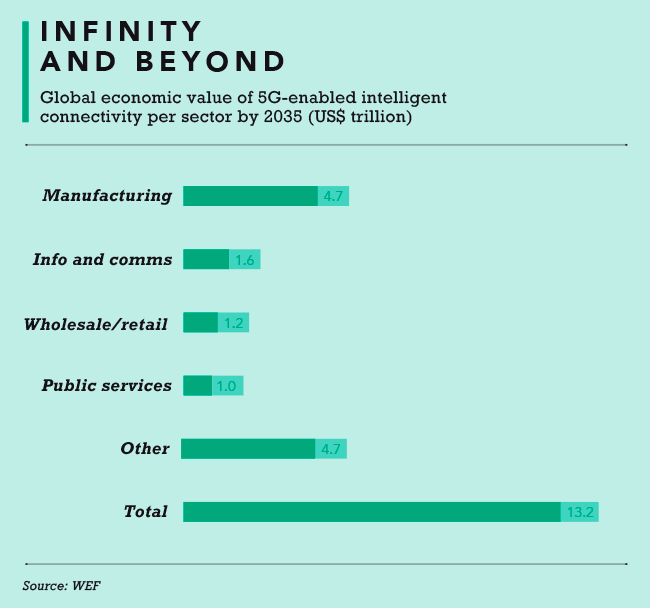 Dimitris Mavrakis, research director at ABI Research, says that by 2030, 5G’s impact on global GDP could be more than US$7.5 trillion (compared to the US$5.1 trillion contributed by 4G in 2019). ‘We expect that 5G will transform businesses in the same way 4G transformed consumers,’ Mavrakis told Huawei’s recent Better World Summit.