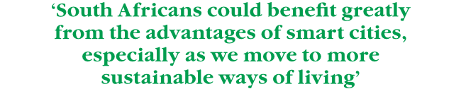 Sense and the city Municipalities will be key to helping develop more tech-aware urban areas By the year 2100, 13 of the world’s 20 largest megacities will be in Africa. According to projections by the Global Cities Institute, megacities from Lagos (projected population 88.3 million) to Kinshasa (83.5 million) and Dar es Salaam (73.7 million) will dot the continent. While India will have three, China, Europe and the Americas will have none between them. What will those African megacities look like? To service those massive populations, they will have to be smart – as will the municipalities located on the edges of those urban sprawls. Smart cities offer several benefits, utilising technology and data to optimise urban functions, improve public services and drive sustainability. In a smart city, the challenges that emerge from crowded urban spaces – from waste management to traffic congestion, water scarcity and energy usage – are solved through the deployment of artificial intelligence (AI), machine learning and the internet of things (IoT). ‘Smart cities leverage technology to bring improvements to every aspect of the citizen experience, from affordable housing to education and work opportunities,’ says Sunil Geness, director of global government affairs & CSR for Africa at SAP. ‘With a fast-growing population and high levels of development, South Africa is well positioned to take advantage of the benefits of smart cities to improve the living conditions of millions of citizens.’ Geness adds that smart cities enable better management through what he describes as ‘more effective data-driven decision-making, reduced environmental impact, expanded opportunities for economic development, safer communities and general enhancements in how communities and municipalities collaborate’. ‘South Africans could benefit greatly from the advantages of smart cities, especially as we move to more sustainable ways of living in light of the growing impacts of climate change,’ he adds. President Cyril Ramaphosa agrees. In 2019 he spoke about his ‘dream of a South Africa where the first entirely new city built in the democratic era rises, with skyscrapers, schools, universities, hospitals and factories’. Noting that South Africa had ‘not built a new city in 25 years of democracy’, he said: ‘Has the time not arrived for us to be bold and reach beyond ourselves and do what may seem impossible? Has the time not arrived to build a new smart city founded on the technologies of the Fourth Industrial Revolution? I would like to invite South Africans to begin imagining this prospect.’ A year later, in his 2020 State of the Nation Address, the president said a new smart city was taking shape in Lanseria, which 350 000 to 500 000 people would call home within the next decade. ‘It will not only be smart and 5G-ready, but will also be a leading benchmark for green infrastructure continental and internationally.’ The South African national government has bold ambitions to ramp up the development of smart cities in the country In 2021 South Africa took another significant step on its smart cities journey when the Department of Cooperative Governance and Traditional Affairs, in collaboration with the Council for Scientific and Industrial Research, published the South African Smart Cities Framework, setting out guidelines for what a smart city means in the SA context. Today, four years on, is Africa’s biggest economy any closer to its smart city dream? No… but yes. Some progress has been made on the ZAR84 billion Mooikloof Mega City in the east of Tshwane, where properties are already being bought and sold. This despite reports in 2023 that the developer, Balwin Properties, was still waiting for the government to provide ZAR1.4 billion for bulk infrastructure. Lanseria Smart City broke ground in October 2024 with a ZAR320 million water treatment plant, and then Minister of Human Settlements Mmamoloko Kubayi confirmed that the first phase of the Greater Lanseria Master Plan (which includes the smart city) had been completed. But when news website BusinessTech visited the site in January 2025 it found what MyBroadband had found on an earlier visit: large stretches of open land and growing informal settlements. South Africa’s slow start shows how difficult it is to make a smart city vision a reality. However, the country’s successes at a municipal level also provide a model for its African neighbours. In 2024, telecommunications group MTN Business was awarded a three-year contract to enhance the digitisation of South Africa’s 257 municipalities through the implementation of smart electricity and water technology. This came through an RT29-2024 transversal contract, an initiative by National Treasury that serves as a centralised agreement for the supply, delivery, installation, management and maintenance of smart metering solutions across multiple municipalities. The aim is to provide financial sustainability for South Africa’s municipalities by eliminating bypasses and ghost vending, and to ensure transparent and financially viable utility management. Smart metering is the back-bone of a smart municipality. MTN South Africa CEO Charles Molapisi points to a study by the Carbon Trust which found that businesses in the UK may be wasting up to 20% of the energy they are billed for, owing to outdated or faulty metering units. ‘Digital technologies have become fundamental to everyday life, and our ambition is to ensure these technologies touch the lives of our government, customers and businesses in various ways,’ says Molapisi. Meanwhile, Naledi Municipality in South Africa’s North West province has partnered with Macrocomm, Ontec and Vodacom in another RT29 transversal contract, this time to upgrade its electricity meters to a smart metering system. Again, the benefits for a cash-strapped municipality cannot be overstated. Smart metering ensures billing is accurate and tra