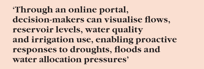‘As a virtual platform, it provides a comprehensive, real-time view of the basin and integrates national datasets, satellite imagery, remote sensing, citizen science data and modelling,’ according to the Diwasa report. ‘Through an online portal, decision-makers can visualise flows, reservoir levels, water quality and irrigation use, enabling proactive responses to droughts, floods and water allocation pressures.’ The digital twin also includes an AI assistant that delivers rapid, science-based insights, maps and scenario analyses.