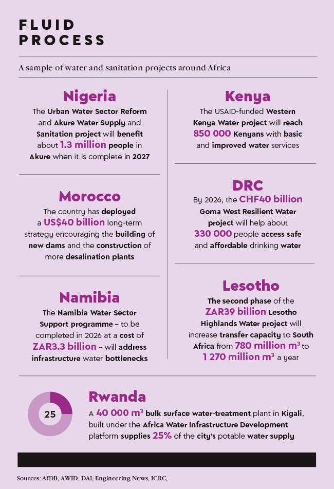 ‘As it stands, there is a risk that sub-Saharan Africa’s infrastructure gap will widen,’ says Mistry. ‘There has been some renewed focus on water in the recent past. As long as it does not remain a “talk shop”, but plans are driven together with experts in the industry, then there is hope to at least narrow the gap.’