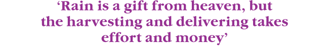 Jonathan Schroder, associate engineer at infrastructure consulting firm AECOM, believes treating water as a commodity would lead to improved provision. ‘While having sufficient water for basic human needs is indeed a right for people and critical for both human dignity and flourishing, it also needs to be treated as both a precious resource and a commodity. An example of this is in Israel, where in the middle of a predominantly arid and semi-arid region, they have a water surplus. This is because water is seen as a commodity and its value is maximised. Water is reused – often multiple times – creating significant efficiency and revenue to afford the services and infrastructure. We have a legacy of a lack or imbalance in water-services provision to address, but the right to water-services needs to come with a responsibility to use it wisely and efficiently, and pay for the service as users. If the financial realities of water services are not addressed, the services will likely become unsustainable. Water services need to be viewed more like a business. Food is treated that way. Rain is a gift from heaven, but the harvesting and delivering takes effort and money.’