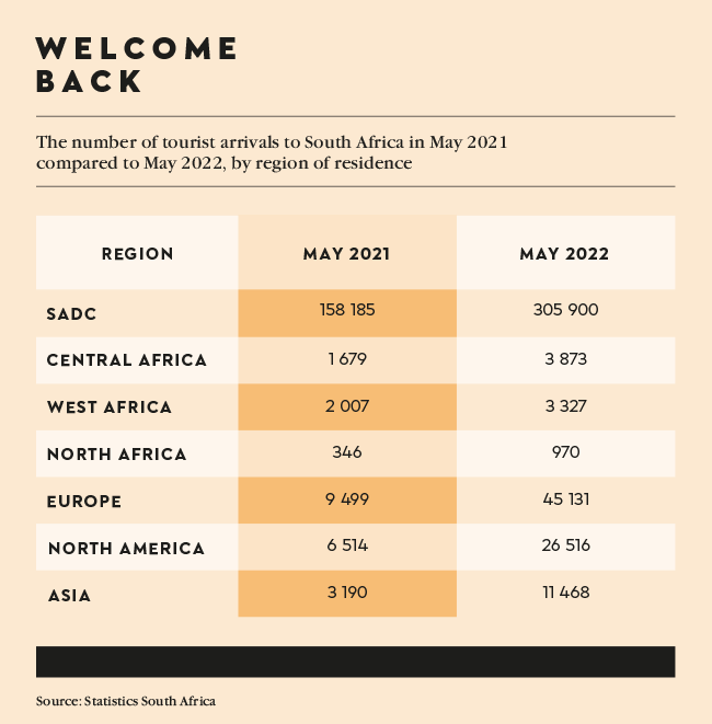 New horizon The focus of South Africa’s COVID-impacted tourism industry is shifting to more authentic and conscious travel After two years cooped up indoors, restricted by masks and social distancing, with hands desiccated by sanitiser, humans are longing for wilderness, for adventure and for greater meaning – in the form of sustainability and empowerment – in their travel choices. At least, that is the view of the global tourism industry, where the adventure tourism market is estimated to generate almost US$1.169 trillion by 2028. It’s no secret (or surprise) that foreign arrivals in South Africa dropped by 71% in 2020 – contributing to an estimated ZAR164 billion loss in spending by domestic and inbound visitors – and that hopes for something approximating a revival were dashed when lockdowns and international travel bans were instigated again during peak season in 2021, thanks to the upsurge in COVID-19 Omicron variant infections. According to the Tourism Business Council of South Africa, overall, the sector is operating at between 30% and 40% capacity compared to 2019. Just 37% of employees in the tourism sector were receiving 100% of their salaries in February 2022. International arrivals are showing a slow increase from a low base. In addition, the liquidation of Comair removed roughly 40% of South Africa’s domestic air capacity. Despite these challenges, there is a palpable sense of optimism and zeal in the industry, which is refocusing its energies on eco and adventure tourism in light of changing, post-pandemic trends. From big five safaris to abseiling down Table Mountain, shark diving, surfing, hiking coastal trails or exploring the other-worldly Cango Caves (to mention only a handful), South Africa has a lot to offer the nature-loving, adrenaline-seeking tourist. And in a post-pandemic world, that’s exactly the kind of tourist the country is likely to see more of. The Southern Africa Tourism Services Association (SATSA), a non-profit, member-driven group representing more than 1 300 companies in all facets of the inbound travel sector, is throwing its weight behind the promise of adventure tourism by embarking on a structured process aimed at developing a voluntary self-accreditation programme. ‘SATSA’s adventure tourism chapter already comprises 121 businesses representing all provinces and adventure types,’ says Andre du Toit, SATSA adventure chapter chair. ‘Chapter members will play a significant role in informing the self-regulatory framework devised by working groups, as well as participate in a community to network and grow the country’s adventure-tourism industry and create awareness of South Africa’s adventure-tourism value proposition and credibility.’ Closely aligned with eco-tourism, adventure tourism offers a strong growth opportunity, where post-pandemic national imperatives include transformation in rural areas, job creation, geographic spread and the development of sustainable tourism products; not least because of the country’s rich assets, excellent climate and the already extensive array of adventure experiences on offer. ‘Tourism is recovering fairly well in South Africa,’ adds Du Toit. ‘Initial pent-up demand is definitely fuelling momentum for travel in the short term, but it would be wise to expect a levelling off during 2023. Eco-tourism is certainly enjoying its share of this spend as travellers yearn for connection with nature and the outdoors after months of video calls and working from home. This is the case with adventure tourism as well, with a market segment that is generally more resilient and willing to travel for their desired experience. With its natural beauty and outdoor lifestyle, South Africa is well placed to make the most of the growing post-pandemic trend of adventure tourism ‘There has also been a move to support local and small business with travellers increasingly seeking to spend their travel buck on experiences that directly benefit the environment and communities they encounter on their travels. This bodes well for the adventure-tourism sector, which is dominated by small, locally focused owner-run businesses that speak to so much of what today’s conscious and responsible traveller is looking for.’ According to Du Toit, the term ‘eco-tourism’ is becoming somewhat anachronistic, superseded by the term ‘regenerative travel’, which encompasses responsibilities beyond basic sustainability practices – possibly in response to greater consumer cynicism around ‘green-washing’, where companies make unsubstantiated or false claims about sustainability and environmental benefits. Marketed as the sweet spot ‘where your vacation meets your values’, the shift reflects a broader prioritisation of purpose and a desire to connect more deeply and respectfully with the natural world. ‘There is a meaningful drive to leave an environment or community in a better position, to help regenerate wilderness landscapes and uplift under-represented groups, bringing sustainable value to both. It is the more conscious traveller who is now reading between the lines and demanding more transparency and authenticity. SA has the opportunity to play a leadership role in this “movement”.’ Singita – which operates game lodges in South Africa, Zimbabwe, Tanzania and Rwanda – is arguably at the forefront of both adventure and regenerative travel in Southern Africa. Its business and conservation projections take 20-, 50- and 100-year horizons into account, and encompass the tenets of the theme, namely prosperity for the local community and environmental regeneration. ‘The safari industry is recovering well,’ says Singita chief strategist Lindy Rousseau. ‘At Singita, we can witness all the pent-up demand we have been discussing for ages. Travellers want to take their once-in-a-lifetime bucket-list trips and yearn to be close to nature to recharge and travel with purpose. This is welcome news f