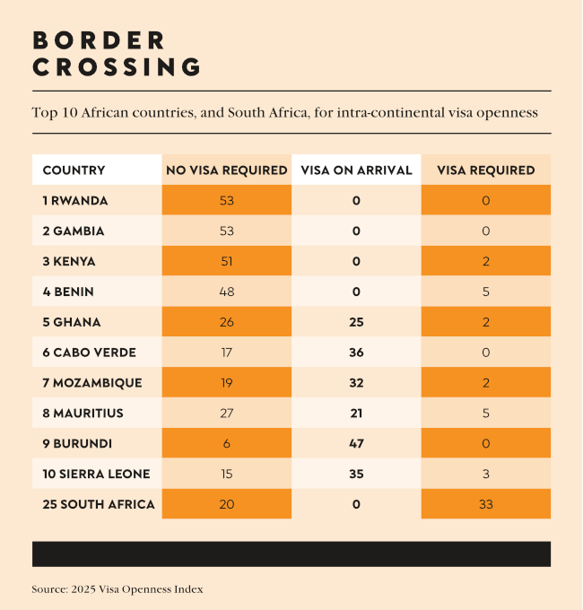 Travelling light Improved digital visas are putting Africa on the path to boosting tourist numbers Passport stamps used to be the traveller’s badge of honour. The more stamps you could show, the more adventures you’d had in the big, wide (and mostly analogue) world. Today’s tourist doesn’t have that. Physical stamps are on their way out as regions such as Europe roll out digitised systems, biometric scans and electronic gates. South Africa recently took steps in that direction, introducing a new Electronic Travel Authorisation (ETA) system before November’s G20 Summit in Johannesburg. ‘It is a system that allows online applications, biometric capture and instant approvals, aimed at replacing paper-based systems and visa applications,’ says Imraan Mahomed, director of employment law at Cliffe Dekker Hofmeyr. ‘The ETA will be integrated with the Electronic Movement Control System that will be based on facial recognition at ports of entry, with piloting taking place at OR Tambo and Cape Town International Airports. The ETA is further aimed at ensuring quick, automated arrivals and improved national security.’ The mobile-enabled platform, which uses facial recognition and QR-coded documentation, supersedes the existing e-Visa platform for short-term tourist visas of up to 90 days and is intended to remove the long-standing visa bottlenecks that have constrained South Africa’s post-pandemic tourism growth. Speaking at the Tourism Business Council of South Africa’s Leadership Conference in September, Leon Schreiber, Minister of Home Affairs, said the ETA is set to eliminate ‘visa barriers that have suppressed South Africa’s tourism potential for many years, while simultaneously revolutionising the security of our immigration processes. Our Trusted Tour Operator Scheme pilot has already brought in more than 35 000 additional tourists from China and India in just seven months, and the ETA has the potential to turbocharge these numbers in 2026’. At its soft launch in November, the ETA system was made available to four G20 member countries whose citizens require visas to visit South Africa – China and India, as well as Indonesia and Mexico. ‘The ETA is going to turbocharge tourism at a scale that we have not seen in decades,’ said Schreiber. ‘Our next bottleneck is going to be that we don’t have enough flights from some of these countries.’ Mexico’s inclusion on that shortlist is a quiet reminder that travel extends beyond tourism, and into trade too. In 2025, news broke that South Africa had lost out on a ZAR400 million Netflix film production because of visa delays. The Department of Home Affairs plans to expand the ETA to South Africa’s land borders, aiming to eliminate corruption and increase border security. ‘It’s very simple,’ said Schreiber. ‘If you arrive at Bulembu Bridge, Lebombo or any of our land borders, and your face does not match the biometrics that were uploaded for the ETA, the automatic gate will not open – and you cannot bribe your way through a computer.’ South Africa’s ETA follows a similar rollout in Kenya in 2024. There, the thinking was that when people move, money moves. By introducing an ETA system, the Kenyan government believed it was, in the spirit of the African Continental Free Trade Area (AfCFTA), eliminating a non-tariff barrier to trade. However, many saw the ETA system as simply a visa by another name. ‘For many travellers, the implementation problems quickly translated into frustrating real-world consequences,’ writes Margaret Monyani, senior migration researcher at the Institute of Security Studies in Pretoria, in a recent online blog. ‘Citizens from many African countries that had reciprocal visa waiver agreements with Kenya, such as South Africa and Angola, suddenly needed to apply for an online travel permit.’ That added layer of bureaucracy contradicted the essence of visa-free travel and was perceived as a step backwards. By January 2025, Kenya had reversed its policy, making all African nationals (except those from Somalia and Libya, on security grounds) exempt from the ETA requirement. ‘Perhaps Kenya had a false start on its sprint towards visa openness, but [it] is slowly finding its footing,’ Monyani writes. ‘The ETA policy is now using technology to achieve efficiency without alienating the travellers Kenya aims to welcome.’ Where East Africa has seen success is with its one-stop border posts, which reportedly cut border-crossing times by 70% and save the region more than US$63 million in logistics costs each year. Kiprono Kittony, chairman of the Nairobi Securities Exchange, shared his thoughts in a recent Standard Bank vodcast. ‘One of the greatest sticking points in the co-operation between [East African] nations has been the movement of goods at the border points,’ he said. ‘This was resolved by a very simple treaty that was engaged in by the countries of the East African region to have a one-stop border post. Today, if I’m going to cross into Tanzania, for argument’s sake, at the Port of Namanga, I don’t need to go through two different buildings. The customs officials are in one facility, as are the immigration officials.’ South Africa aims to replace its paper-based visa systems with the new electronic travel authorisation system, which will allow online applications, biometric capture and instant approvals In South Africa, Schreiber has made it clear that the ETA system aims to – as he’s so fond of putting it – ‘turbocharge’ tourism. The country’s international tourism sector is still 12.8% below 2019 levels, highlighting a slow post-Covid recovery. Statistics South Africa recorded 8.9 million tourists arriving in 2024 (the most recent full year for which numbers are available), up 5.1% from 2023 but still short of the 10.2 million recorded before the pandemic disrupted global travel. A trip up the African coast would bring good goods. While an